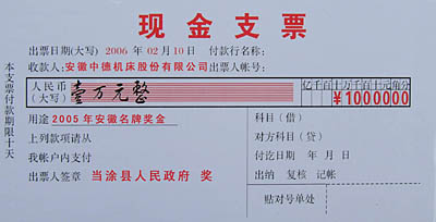 “中德機床”獲當涂縣2005年度“創立品牌獎”